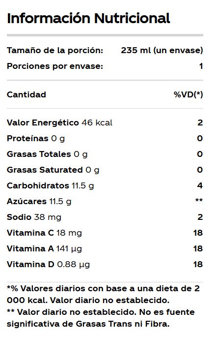 Bebida de Durazno con vitaminas A, C y D.
